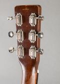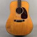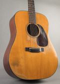 This 1953 Martin D-18 features a spruce top paired with mahogany back and sides, providing the timeless tone wood combo featured on records of every genre. The guitar has received a neck reset, refret, replacement bridge, and replacement bone nut and saddle to maintain structural integrity and function. Additional repairs include two crack repairs at the treble-side waist, a side puncture repair on the lower bass bout rim with color touch-up, and a reglue of the bass-side X-brace. The bridge plate shows wood dust and glue fill at the pin holes, and a mahogany dowel is present in the end block from a previous electronics installation. Replacement tuners are currently installed, with the originals included in the case, and a strap button has been added.