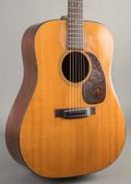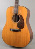 The Martin D-18 remains a benchmark for dry, direct mahogany dreadnought tone, with a clear, fundamental response and strong note separation. This 1960 example has seen extensive maintenance over the years, including a neck reset, compression refret, repaired bridge plate, and a reglued bridge, all aimed at long-term stability and proper playability. Several repaired cracks are present throughout the body, along with a small patched area on the treble side and a repaired B-string crack, all structurally addressed. A replacement nut, saddle, and non-slotted pins are fitted, and a former strap button hole at the heel has been cleanly filled. Overall, this is a well-maintained vintage D-18 that offers classic sound with the benefit of thorough, documented repair work.