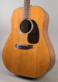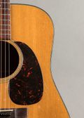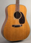 This player grade 60s D-18 has been through the wringer, but as the old adage goes: the best ones get played! Its back and sides have many cracks, that have all been addressed with small button cleats, and it remains stable and steady. There is also a large mahogany patch on the bottom. Its playability has been preserved with a neck reset and fret level, to ensure a smooth experience, and the bridge and bridge plate have been replaced. Despite its cosmetic condition, sonically it's a beautiful instrument. It has a dry snappy response that falls right in line with some of the best vintage D-18s.