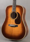 Cosmetically, there is visible playwear throughout, including the repaired top cracks, dings and wear across the back, and finish burn along the neck in the first position and at the lower back. It remains in very good condition for its age, and carries a powerful tone. Martin production records show only four "dark top" D-28 guitars were shipped in 1950, and this rare piece is one of the four!