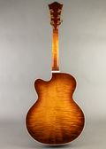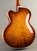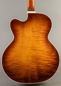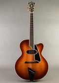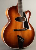 This 1994 Monteleone Eclipse Oval Hole comes in a warm Sunburst finish and remains in great shape, showing only minimal signs of wear. Built by John Monteleone—widely regarded as the heir to the D’Angelico and D’Aquisto archtop tradition—this model reflects the refined craftsmanship of that lineage in a more modern, understated form. The oval soundhole adds a distinct tonal character, and the pickguard is shaped with precision, hovering cleanly above the top. The neck features a smaller radius but a wider nut, offering a comfortable and open feel that suits both chordal and melodic playing. Tonally, it's something special—offering low-end presence reminiscent of a dreadnought, balanced by articulate mids and a smooth, gentle high end that sets it apart from traditional arch-tops. Comes with the OHSC.