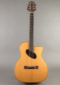 Built with flamed maple back and sides and a Tyrolean red spruce top, this Hot Club model was designed to encompass a broad dynamic spectrum of balanced response from the lowest to the highest notes on the guitar.