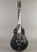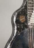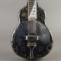 This 1950s National Resophonic in Black Mother of Pearl is a striking and unusual creation—a resonator guitar built within the compact frame of an electric-style instrument. Its pearloid veneer shimmers beautifully across the body, giving it a bold, vintage aesthetic that’s pure National charm. The wood body lends warmth and depth to the tone, while the resonator cone delivers that unmistakable metallic shimmer and projection. Compact yet full of character, it has the soulful, singing voice of a classic resonator in a smaller, more portable form. A rare and visually stunning piece that captures the inventive spirit of mid-century National design.  Comes with a chipboard case.