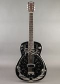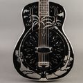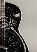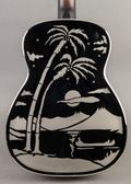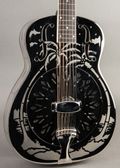 From National: "National’s 14-Fret Style “O” became an icon when Mark Knopfler began using a late 1930s model and pictured it prominently on the cover of Dire Straits’ Brothers in Arms album released in 1985. Our reproduction is true to the vintage original. The smaller, 14-fret body allows versatility and ease of access for reaching those higher notes. The brass-bodied instrument is polished to a mirror-like shine, nickel plated, and then etched with the exotic Hawaiian palm-tree scenes. The maple neck is finished in a traditional sunburst. An ivoroid-bound ebony fretboard and vintage-style engraved tuners complete the look of this enduring classic."
