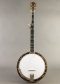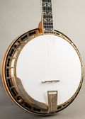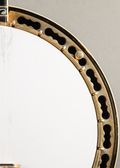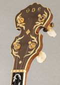 This ODE Model 6500 is an ornate banjo with beautiful design and bright, defined tone. It has some player wear with patina on the hardware and a worn neck, but remains very comfortable to play. Replacement bridge and head.