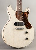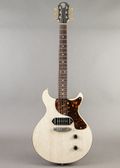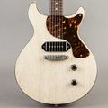 From Patrick James Eggle: "The Macon Junior is a guitar made for gigging. The slab body, contoured heel, and wraparound bridge give this guitar ultimate simple playability. Featuring many of the same subtle touches as its big brother, the “Macon Carve Top,” this instrument is a serious take on the old student favourite. Hand-wound pickups include a “dogear P90,” along with a high-quality Faber wraparound bridge and single volume and tone controls. Finished in aged nitro in a variety of classic colours."