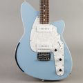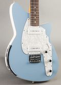 Here’s a 2006 USA-made Reverend Slingshot finished in classic Daphne Blue with a chrome armrest. This semi-hollow model features a mahogany center block paired with Reverend’s signature molded polymer body and phenolic top and back, giving it a lively, resonant tone and lightweight feel. The guitar is in excellent condition with no play wear, scratches, or cracks—remarkably clean throughout. A standout example from Reverend’s U.S. production era.