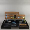 Schmidt Array combines British engineering with German craftsmanship to bring you one-of-a-kind pedalboards. This SA750XDM has just about any upgrade you could wish for. Finished in a custom walnut stain, it has a custom lid and two connector boxes with TRS Stereo connectors, MIDI and USB access. The board was built to host a looper switching system (RJM Mastermind PBC/10) and two expression pedals in the front row for easy access. The top shelf lifts up for quick access to power supplies, cable management, etc.