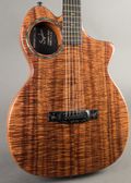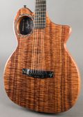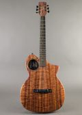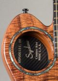 Sydow Koa ultra-thin 1.75" acoustic-electric guitar, with carbon fiber resin-infused to the back of the Koa and cf bracing for superior resistance to atmospheric conditions that regular guitars are vulnerable to. The carbon fiber process and bracing enhance sound transference, giving unexpected volume and projection. It has a Richlite fretboard with luminous inlays on side, Dual truss rods, Speedneck knock-down finish on neck, off-set tuners. All this give ultra easy playability, remarkable performance for stage or studio, and long life durability. The Go Acoustic Audio System takes all this to an even higher level, the system offering superior feedback rejection, adjusts volume of Each string, and adjusts EQ mid-range of all: this system has an access hole on back.