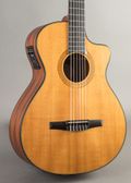This Taylor NS32-CE is a great classical guitar with warm, rounded tone and excellent playability along its slimmer D-profile neck. It's recently undergone a bridge reglue and is now in stable condition. There is some notable finish wear with several dings on the back of the guitar and a hairline finish crack along the bass side of the bridge.